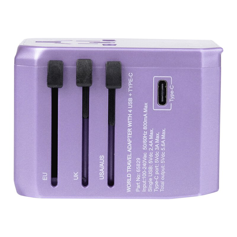 5-Ports Type-C & 4 USB Universal Travel Adaptor (Max 5.6A) (Purple) *Free pouch inside* *1 Year Warranty*